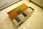 سطح طاولة خشب طبيعي مع جزء مطلي أبيض.