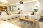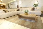 تعتمد الركنة على درجات الأوف وايت والكريمي الناعم التي تمنح إحساسًا بالنقاء والاتساع، وتتناغم الوسائد بدرجات البيج والبني لتضيف عمقًا ودفئًا بصريًا متوازنًا، بينما تعزز السجادة العصرية متعددة الدرجات الطابع الهادئ وتحدد مساحة الجلوس بأناقة، ويكمل الطاولة الخشبية البسيطة بخطوطها المستقيمة الطابع المودرن الدافئ.