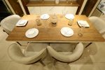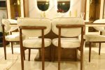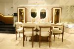طاولة طعام كبيرة وبتصميم عصري مع كراسي مريحة بألوان محايدة تتماشى مع الأثاث.