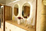 إضاءة LED مدمجة في المرايا والخزائن لتوفير إضاءة ملائمة وآنية.