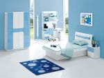 ألوان منعشة ومريحة: الغرفة تتميز بألوان زرقاء هادئة مع لمسات من اللون الأبيض، مما يعكس جوًا من الهدوء والنشاط في الوقت نفسه. ألوان تناسب الأطفال أو المراهقين وتضفي جوًا مريحًا ومنعشًا.