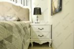 الكومودينو :2 كومودينو صغيرة بيضاء مع مصابيح مغطاة بأباجورات سوداء توفر إضاءة دافئة ومريحة.