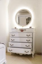 التسريحة: تسريحة أنيقة مع مرآة دائرية مزودة بإضاءة مخفية توفر إضاءة ناعمة وتضيف لمسة عصرية.