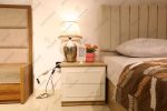 • كمودينو جانبي مع إضاءة جانبية، مما يضيف طابعًا عمليًا ودافئًا.