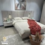 سرير مقاس 160 سم بتصميم مريح مع ظهر مبطن لإضفاء لمسة من الدفء والرفاهية.